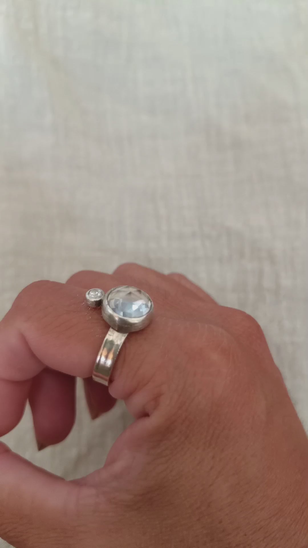 Sofisticado anillo de plata con cuarzo cristal como piedra central, acompañado de delicado circon que aporta brillo y elegancia. Un diseño solitario refinado, perfecto para realzar cualquier estilo con un toque luminoso.